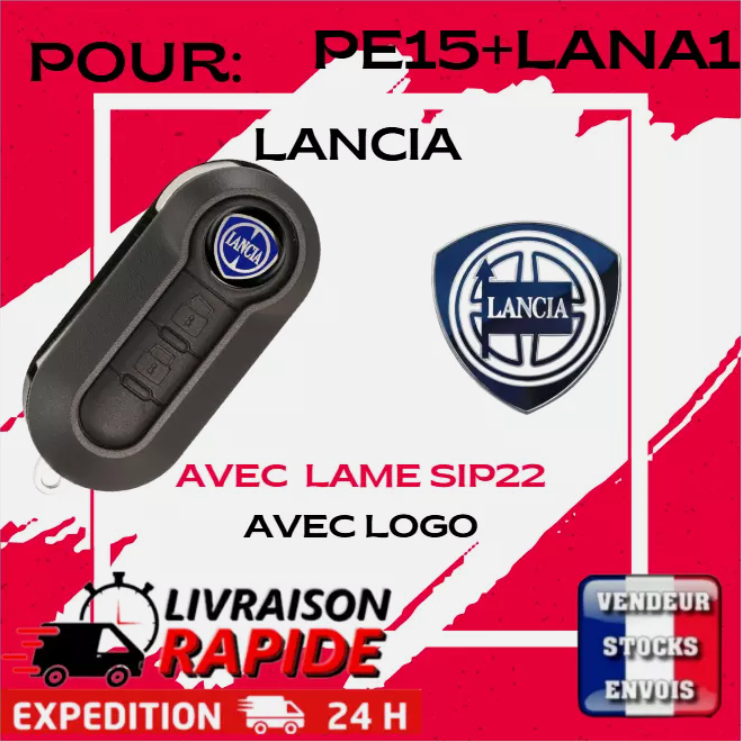 Coque clé 2 boutons pour Lancia Delta (2008-2014), Ypsilon (2011-2018) + logo